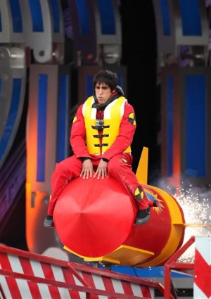 - 73 - Rocket Sledge - Contestants each sit unrestrained, straddling a rocket. The contestant with the wrong answer sees their rocket launch forwards up a shallow ramp, before stopping dead at the end, leaving them to be ejected forwards and down into the pool below.