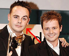 (Pictured above left) Geordie funster and screen partner of Declan Donnelly. He rose to fame playing PJ in Byker Grove, in which one of his fellow cast members was Donna Air. With Dec, he embarked on a remarkably successful pop career, before moving into light entertainment, fronting the ITV saturday morning shows SM:TV Live and CD:UK alongside Dec and Cat Deeley. Now seemingly part of the media establishment, he won a Lifetime Achievement Award at the 2002 National Television Awards, aged just 27. In 2007, he and Dec signed a "golden handcuffs" deal with ITV worth 30 million pounds (i.e. 15 million each) over three years.