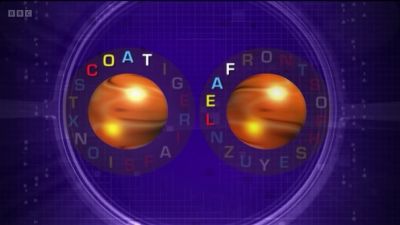 - Sphere and Now, two circles of rotating letters, each letter in various colours. Clive calls out a word from the left-hand sphere, and the contestants find a word on the right-hand sphere that matches the unique colour sequence.