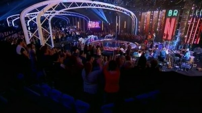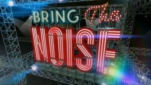 Yes, it's a panel show, Ricky declares a winner to each round and an overall victor. A panel show, but it doesn't look like one. While QI and its ilk have the two teams behind desks facing the audience, Bring the Noise was dominated by a massive stage. The panelists sat around the sides, a style much closer to The X Factor.