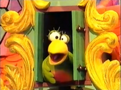 The host guided two teams through the Crazy Cottage, starting the programme with a cheery "Goodbye, hope you enjoyed the show!". The five games in the 25-minute show were played in nominally reverse order, beginning with Round Five and ending at Round One, though a winner was declared at the end of the show, conventionally enough. Now and again references were made to going down and up stairs when going up and down, respectively. A supporting character was Vera, a glove puppet cuckoo, who couldn't get the hang of this going-backwards gimmick. Through the windows of the house gaudy coloured skies and giant child audience members could be seen.
