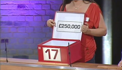 The £250,000 top prize was first won on 7 January 2007 by Laura Pearce, a 24-year-old (at the time) civilian police worker from Hemel Hempstead. She rejected her final offer of £45,000 with the £250,000 and £3,000 as the last two remaining amounts and the chance to swap her box, and her box contained the £250,000. Inevitably, the result was leaked in the press weeks beforehand.