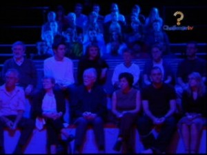 The DefectorsIn the opening round First Impressions, the audience are invited to back which contestant they want for the first two questions of the programme after only seeing them and hear them say their name and where they come from. We hear a five-second jingle (more of which in a moment) while the camera zooms around the audience as people press A, B, C or D on their Defectors voting panels.