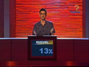 Since this is the first of many voting sessions during the show, they have done their best and tried to shoot the voting using a large number of different angles throughout the 40 minutes and they just about get away with it. What would have been nicer is a computer graphic which showed you all the people (represented as dots or something) defecting from one contestant to another. As it is, the scores for each contestant are just shown in boring percentage terms.