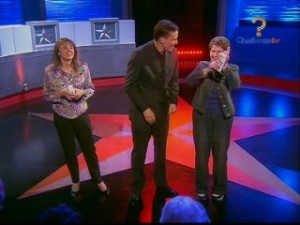 Richard gives the contestants their duesHost Richard Orford - he of former Big Breakfast roving reporter fame - is a really great emcee, chipping in with useful and timely incidental information in order to help sway the (usually stubborn) audience, particularly if the winner in points terms has actually answered fewer questions than one of the other players. It's also clear that he knows what he's talking about when reading the questions and he's got a good sense of control.