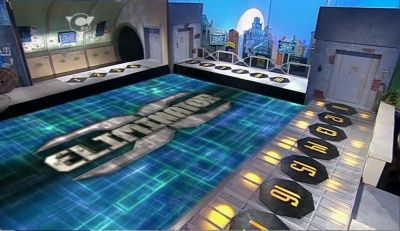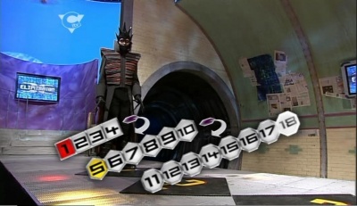 The game is easy to pick up though if you've missed a show thanks to the use of computer graphics to give a snapshot of the game showing the team's position in green and the eliminator's position in red. The same effect is given on the game board with red and white lights under every space which light up accordingly with whoever's on it, nice touch.