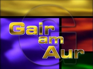 The show's name roughly translates as "Word for Gold". It's a pun on the Welsh idiom "gair am air" which means "word for word" and was also the title of a game show back in the 1960s.