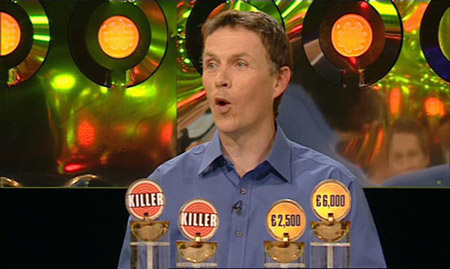 Four players are dealt out golden balls worth varying amounts of money (from a tenner to £75,000) and some "Killer" balls. Two of each player's balls are on show, the rest are known only to each player. The aim is to eliminate the players with the Killers whilst keeping the big money in play, with a The Weakest Link style vote. Obviously players who dealt weak balls have to fast-talk their way into the next round. The final two players aim to build as big a jackpot as possible, and then inevitably go home with nothing because they're both very selfish.
