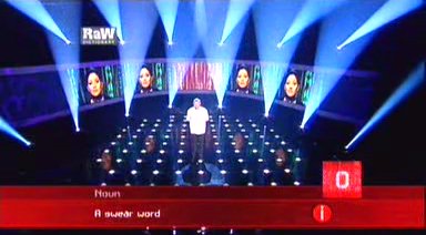 Although largely successful as a concept (it being handled by the same team who brought us the revived Strictly Come Dancing) there are many aspects of this show that strike us as being heavy-handed. First of all, ten contestants in a half-hour quiz seems a bit 'over-staffed' - losing 60% of the contestants in Round 1 is a rather blunt instrument, particularly as the result is being decided over just 45 seconds (about 8 words). It seems to be A Bit Of A Wasted Journey to have a better-than-even chance of going home after less than a minute of screen time. (The second series has rectified this, having only three contestants from each region competing. Someone high-up at the Beeb been reading this site?) Also, repeating Round 1 twice isn't particularly clever, and as such the programme never progresses as much as it should. (Almost spookily, this too has changed for the second series, with a new game of 'spelling tennis' being introduced, which only a particularly unkind reviewer would note is distinctly similar to a game played already in ITV's one-off celebrity Spelling Bee. The following sentence is left as it was after the original series aired so that readers can fully appreciate the staggering prescience.) So many elements are competing for the precious few minutes that the end game also feels very rushed. This is either a 45 minute show with a 30 minute time slot, or they should have used 3 or 4 finallists per region.