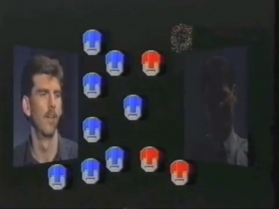 Round two had another clip but this was a little different. Each player had a certain amount of hitmen on a battlefield (one extra for whoever had got into the round first), and for every question correct, they could take out one of your opponents hitmen. Exciting strategy based contest? Erm, no, as the winner was the person who doesn't lose all their lives.
