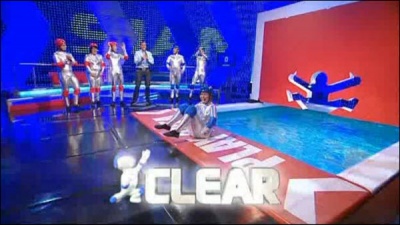 Abysmal national stereotyping aside, this is a pretty stupid game. Fortunately, it's also simple enough to be understood even by us, so here goes. There are two teams of three celebrities (well as close to celebrities as you'll find on a show like this anyway), and a total of four walls per team to be tackled in order to determine which team will face the final Mega Wall.