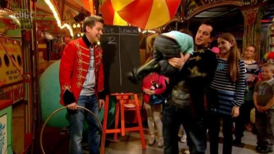 Broadcast at 6pm on Fridays, Hoopla didn't pretend to be educational or informative, it was a pure entertainment programme. The ostensible setting was a travelling Victorian circus, coming from such tourist traps as Whoopy-dooe. Featured in the hour were magic tricks, contortionists, and musical performances. Slotted around these attractions was a series of games, leading up to a final.