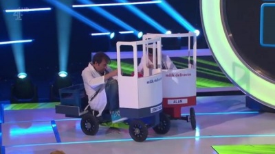 But which of the audience? Alan is joined by a star guest (in the first three shows: Amanda Holden, Jonathan Ross, Mel Giedroyc). With the guest, Alan does some silly games with a vague relevance to office work. That bubble-wrap stuff you use to secure packages? Try wrestling while holding a large reel of it.
