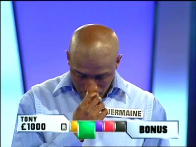 One of the problems in this whole colour-coding device is that firstly it's not very easy for first-time viewers to pick up (you can imagine the nation's grannies asking "What does that purple one do again?") and besides, for colour-blind viewers the gold & green and red & black squares are too similar to tell apart. It would have been much preferable if all the squares were revealed with symbols as well (e.g. "£" on the gold squares).