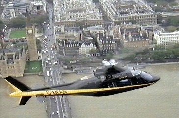 While the contestants are running around on the ground, he starts in a separate, ominous black helicopter a short distance away. He is told the start positions of the contestants, although by the time he reaches either start position the corresponding contestant may have moved on.