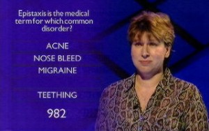 Three absolutely normal people, cajoled/pushed along/irritated by popular Loose Woman Nadia Sawalha (Julia's less successful sister you would, probably very correctly, assume) answer general knowledge multiple choice questions. Or as it's put: "the show where each question has five possible answers but only ONE OF THEM is correct..." So, this is just like any multiple choice quizzer that's ever been produced. That's not an incredibly exciting tagline, I'm afraid.