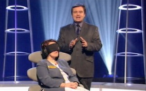 There was an amusing gaffe Eamonn made once when the blindfold bit was going on: "It is on with the blindfolds, it is on with the headphones... as we cut them off from the balls!"