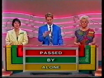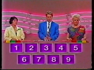 The end game was as good as they come, however. The winning team could double or treble their winnings, depending how many rounds they win, by identifying the correct lyric word for up to nine tunes in 30 seconds, each correct answer earning a note for the main tune. Very tense, and superbly infuriating when they'd fail to identify daft songs like Nellie the Elephant from nearly all the notes. If a team win five consecutive shows they would win a £500 bonus.