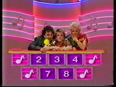 Music game which was produced from the Australian format juggernaut we call the Grundy-o-matic. Two teams of over-excitable, now middle-aged, '60s mods battled it out to be the first to identify popular song tunes from their first nine notes, seemingly "played" by a 1978 Korg XJ-1000 on its last legs.