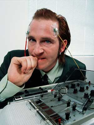 In Round One the audience get to question each panellist. Whilst several questions are asked, these are cut down in the edit to about two per panellist and after each question Kaye tends to fit in an innuendo-laden joke. When everyone has been questioned the audience get a chance to vote. They must decide on their keypads which of the panellists is the biggest liar. Lots of flashing LIAR signs flash on and off in the background during this bit. After voting, Kaye reads out the voting percentages from left to right (revealed with a rather cool polygraph graph with the percentage overlayed on top). The person with the highest percentage is declared a big liar and has to sit down shamefaced, and a big computer graphic with the word LIAR is stamped on top of them just to rub it in.