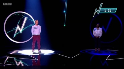 Round 2 is a bit longer, a full two-and-a-half minutes. The requirement to nominate also increases, to two correct answers. Players have no chance to stall tactically, Zoe will push them for an answer and if necessary move on to the next question. Nor do players see any sort of clock telling how long is left in the round. Again, whoever's got the light when time expires is eliminated.