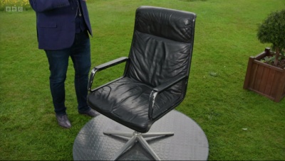 The black chair that has become the programme's trademark.In Round One, each contender goes up to the famous black chair (pictured) one by one, and is asked "Name?", "Occupation?" and "Specialised subject?" The contender is then subjected to two minutes of quick-fire questions about their subject. If they get stuck on a question, they can pass (although these are taken into account in the event of a tie). At the end of the two minutes, a buzzer is sounded, and if Clive is in the middle of a question, he says one of television's most famous catchphrases, coined by Magnus: "I've started so I'll finish". (Unlike Magnus, but like John, he does not follow this up with "And you may answer".)