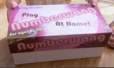 A NumberWang "board game in a box" was produced in 2008, including the board, numbers, two 400-sided dice, special hosting accessories and all 37 volumes of the rules so that you can say "That's NumberWang!" with confidence. For everyone from ages 8 to 88.