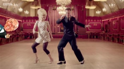 Before anyone can get their hands on this, there's a game to play. Two contestants join two pairs of celebrities, and Len Goodman hosts. To help the players warm up, and demonstrate the idea to the viewers, each celeb solves one of the riddles.