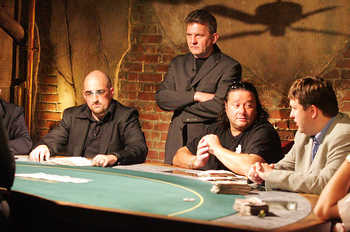 The set is, rather predictably, an underground gangster's back room. Full marks to Grub Smith's very witty, slightly smutty and seemingly unscripted commentary (example: 'A pair of Jacks again? What have we got here - a dealer or a photocopier?') which fulfills two things. First, it makes a long and fairly sedentary show more watchable, and second it makes up for those pitiful episodes of Jo Guest: Investigates or whatever it was called.