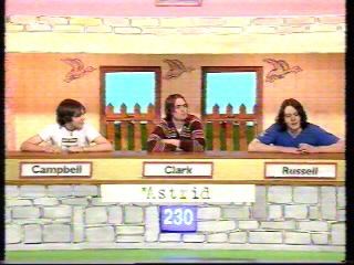 That's the game, what's more difficult to convey - and the reason why it's a lot more fun than Uni Challenge - is the humour that Mark and Lard inject into it. For example, names are often deliberately misread ('Broccoli Spears' for Britney Spears, 'Louse' for 'Louise' and stuff like that) and there is often banter between the two hosts, especially if one team is doing really badly ('Oi Lard, I think your team might as well go home', at which point Lard will leave his seat and threaten to break the set if he isn't given some points) or the pop trivia questions that lead into the break. "Before the break Lardy Boy asked if you could name all of Spandau Ballet's albums. What's the answer Lard?" "No." "Alright, thanks Lard..."