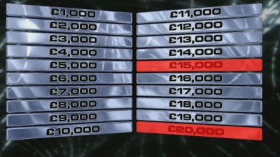 One thing they could have done to increase the tactical options has been recognised, but hasn't been implemented well. The game's main element of strategy lies in the fact that if, say, the £3k, £4k and £5k machines have already been revealed, you know that if you get past £2k safely the worst you could get from that machine is £6k. This is referred to as "playing the gaps" by Millie in her stats updates, but unfortunately the unseen values appear on a completely different screen to the cash machines, so it's nigh on impossible to play this strategy well, and impossible for the viewer to follow.