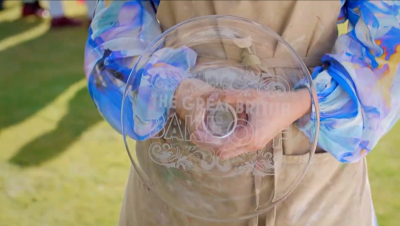 Trophywatch: Series 1 champion Edd Kimber received a traditional cup-style trophy, Series 2 winner Jo Wheatley got an enormous vaguely sculptural monstrosity made of mixing bowls and kitchen utensils. Things settled down after that, with subsequent champs receiving etched glass cake stands (clear for the series, white for specials).