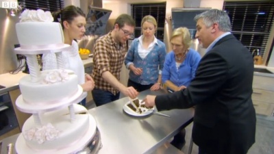 Between the first two series, there was a special edition which, although it didn't actually acknowledge it on screen, was quite transparently made to tie in with the wedding of Prince William and Kate (or Catherine, as "the Palace" insists on calling her) Middleton. Called The Great British Wedding Cake, it reunited the three finalists from the first series and challenged them to each make a "traditional wedding cake", and a "contemporary wedding bake". Mel and Sue were absent, and strangely weren't really missed, with the history inserts featuring Paul and Mary instead. Actually, now we think about it, it's maybe not that strange - after all, the two-judges-and-a-voiceover format has served Masterchef perfectly well for years. However, Mel and Sue returned for the second series proper.