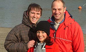 Sarah Cawood and Joe Mace with Sir Steve Redgrave