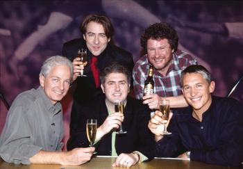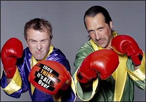 Usually brilliant laddish satirical sports quiz show of irrelevance (or should that be irreverence?). Anyway, the team captains are the very posh David Gower and the big-eared crisp-toting Gary Lineker, both aided and abetted by comedians such as Lee Hurst (latterly Jonathan Ross) and Rory McGrath and either a comic or a sports person.