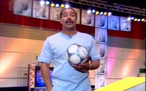 Hit the Target - Professional sportsperson is put under pressure to try and hit nine targets with twelve objects relevant to their sport. So for example a footballer will try and hit nine areas of a goalmouth, or a basketball player will try and get a ball in each of nine baskets in 3x3 formation. Each of the targets are numbered and Ruth (roving reporter and Channel 5 newsreader) asks our celeb which one they are going to try and hit. All a bit academic really as any target hit counts, although a second hit in the same place counts for nothing (as when a target is hit it's removed). £100 for every target hit with £1000 if they can get all nine to go to charity. A wide variety of sports keeps the interest up in what is otherwise a pretty simple affair.