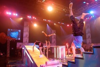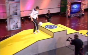 Keep it Up - I know it's Channel 5 but no, it's not that. Instead, pairs of people attempt to traverse a simple obstacle course whilst keeping a football in the air without holding it. The course is split into two and at various points across the course the person in control has to kick it across the divide to their partner. After the final crossover, the person in control has to aim for the goal. In each heat the best performing team go on the Leader board and at the end of the series the team at the top win £2000. Like many of the events on the show, it doesn't seem like a compelling idea but is impressive to watch when it gets going.