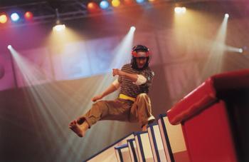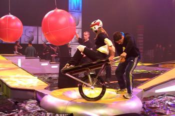 Big events take the form of giant and difficult obstacle courses. Examples include Super Biker, a bit like Kick Start but without the killer theme. Our bikers have to try and traverse an urban assault course (oil drums, bunny hops ladders and the like) as fast as possible without hitting the ground.