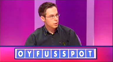 We're claiming ten points from the first round, because we got STARTER. "How do you put up with him?" asks Des of Susie, and it only gets worse when SUPERMAN comes up in the fourth round. Honours were even up to that point, but Aaron was the only contender to spot the hero, and his lead goes up to 18 points at the anecdote, which Gyles neatly links into SURNAMES, another word from round four. Both players go 7-6-7-6 in the second period, but Aaron manages to mess up the second numbers game by suggesting 4x8=48. Stewart pounces on the error, and reduces the deficit to 11 points. There's no change in the remaining letters games – just one of the eleven changed the relative score. Another mistake from Aaron allows Stewart to pick up another seven points, and the Conundrum is crucial – if neither player gets it, Aaron has the win. IDEALSNOG is the word, and the seconds tick by so quickly. No-one buzzes in – ALONGSIDE is the answer – and Aaron has won by the skin of his teeth.