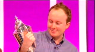 PRONATED comes up after the break, and Jonathan moves further ahead with HEAVE from a diabolically difficult round. Both profit from slightly unlikely sevens – AGOUTIS (friends of gophers) and STIGMAS. David moves back with a seven on a very difficult numbers game to lead by 61-60 at the break. David pulls off more than he can chew – ULTIMATI* isn't the plural of "ultimatum", third declension neuter, ends in m, plurals with a. Jonathan takes five with TOTAL, and the lead. David declares first in the last letters round, and sticks with the safe seven of RELIEFS rather than a dodgy eight – Jonathan only had a six, so David takes the lead, now by three points. A trivial numbers game does nothing to help, so it all goes down to the conundrum, the first crucial conundrum of Finals Week. A handshake before the conundrum is wonderfully sporting, David unscrambles RAPRECIPE into its constituent RICEPAPER, and wins what has been the most engrossing match of Countdown we've seen in a long time.