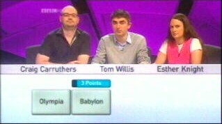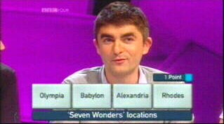 Readers will be accustomed to the sort of thing we've done in the style of Round Britain Quiz. We found the questions to be at a level we could play along with – we were, for instance, able to get the sites of the Seven Wonders of the World in round 1 from two clues, but were completely flummoxed by one of the subsequent literary questions.