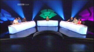 The show is hosted by Victoria Coren. She'll prove to be a bit snippy at times, and a touch brusque in the final round, but it's a style we can see ourselves coming to like. The set is minimalist, with lightly coloured perspex shapes and raring spotlights. If it had a video wall going round the outside, we'd be confusing it with the set to Battle of the Brains. For much of the show, the teams are shown sitting at high desks, with great acres of white space beneath. These spaces are going to come into their own very quickly in the show.