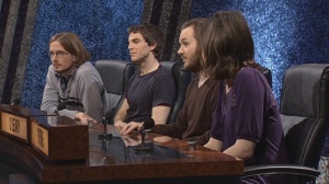 So, what was Mr. Smallhead's favourite episode of HHH? The one with himself and eleven other angry men? We'll never know, because he talks about Caroline Fitzsimons's job as a district nurse. It's one step forward, one step back during the general knowledge questions, and the round concludes at 17 (8).