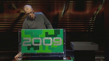 Intelligence was a Tetris-style game, dropping blocks into a frame to build up a rectangular wall displaying the number 2009 on one side only. We rather expected at least one contestant to build half the wall on their table, but this was evidently deemed far too obvious. Mr. Bell took his third win of the night, with a large surprise as professional puzzler Mr. Colfer finished last.