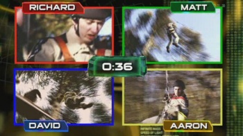 The assault course was filmed as a time-trial, with all the contestants competing individually, then shown as a split-screen. We reckon this made for better television than the previous two races of two, but having all four race alongside each other at the same time would be even better. By now, Mr. Bell had an almost insurmountable lead, but he still had time to remind us why he was part of the 2001 University Challenge finalists by sweeping the general knowledge round. He finished with the highest Krypton Factor of the series, and is a worthy United Kingdom Superperson of Nineteen Ninety Nineteen.