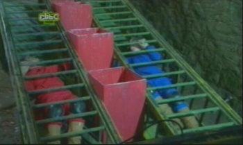 Like the last proper series of Raven, this show has been shot in high-definition. To suit scheduling on the BBC-HD channels, the episodes are made to fit a half-hour slot. That leads to rather a lot of obviously-rehearsed conversation between Raven and the teams, usually along the lines of "Do you think your captain should be replaced?" "No, we're doing this as a team." "But do you think your captain should be replaced?" It's not exactly Paxman, but it's tougher questioning than anything in the previous two hundred episodes. These exchanges were heavily rehearsed, and we found the effect to be tremendously stilted, especially in comparison to the warriors' pieces to camera.