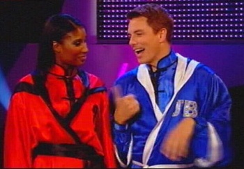 In the middle is the Star Challenge, an excuse for Mr. Barrowman to invite a celebrity onto his show. Can the host perform a karate routine better than Denise Lewis? When was Denise Lewis ever a karate expert anyway? The celebrities are only competing for pride, and the honour of winning a prize for a randomly-picked member of the audience's charity. Anyone would think we'd stumbled across a pantomime version of Challenge Ant Versus Dec.