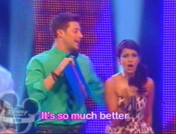 Then there's a brief snipped from backstage, where the two finalists have been receiving some training from the resident vocal coach. The two contenders each take a whole verse and chorus from a song before joining together for the finale. The rest of the teams join them on stage, the judges pass their comments, and the audience votes on which they believe was the better team. The winners progress to the final; the losers go home with a karaoke system and other goodies. There's an upbeat singalong to end the half-hour show. The final episode featured the teams performing their own choreographed routines. So, what have we got? A coherent structure that doesn't repeat itself, no needless gamble, some judges of known quality, and hosts who can both sing. OK, the budget is clearly minimal - the set looks cosy and homely, rather than the ludicrous expanses of other singing contests - but that's no reason to knock the show. It's all far more thought-through than ITV's show. |