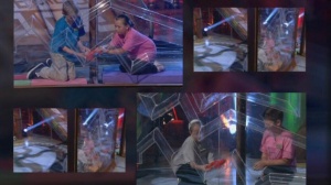 The Mixer then does its work, and spits out four new pairs of frenemies. The bulk of the show is taken up by playing three challenges from a fairly small bank of about ten games. Some of them are actually rather entertaining: one has a hairdryer for each player and a number of lightweight red balls, with the object being to keep the balls out of your own gutter and land them in someone else's. Another good game has the teams completing a six-piece jigsaw from underneath the table, and while lying on tea-trays with wheels. The final challenge is something both teams do between themselves, allowing split-screen shots – close-ups of both teams and a more general view. Shades of The Mole there, and that's always good. It's a slight shame that there are so few games, but the ones they do have are good enough to bear repetition. After each challenge, the losing pair have a quick chat with Joel (along the lines of "Where did it go wrong?" "They were better than us.") and are then sent back to lockdown in The Mixer, from where they won't return until the end of the show, if at all. |