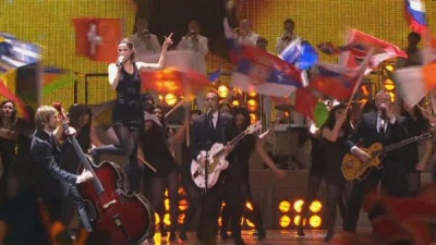 Top ten finish for Lena, "Taken by a stranger" made 107 points, with a top score of 10 from Austria. Unlike last year's song, this year's entry was a suspenseful, almost fearful entry. And it had some game show connections – the backing dancers were dressed in the zentai suits borrowed from Big Brother, and the song might almost have been based on the vibraphone "tension" music from the UK's Deal or No Deal.